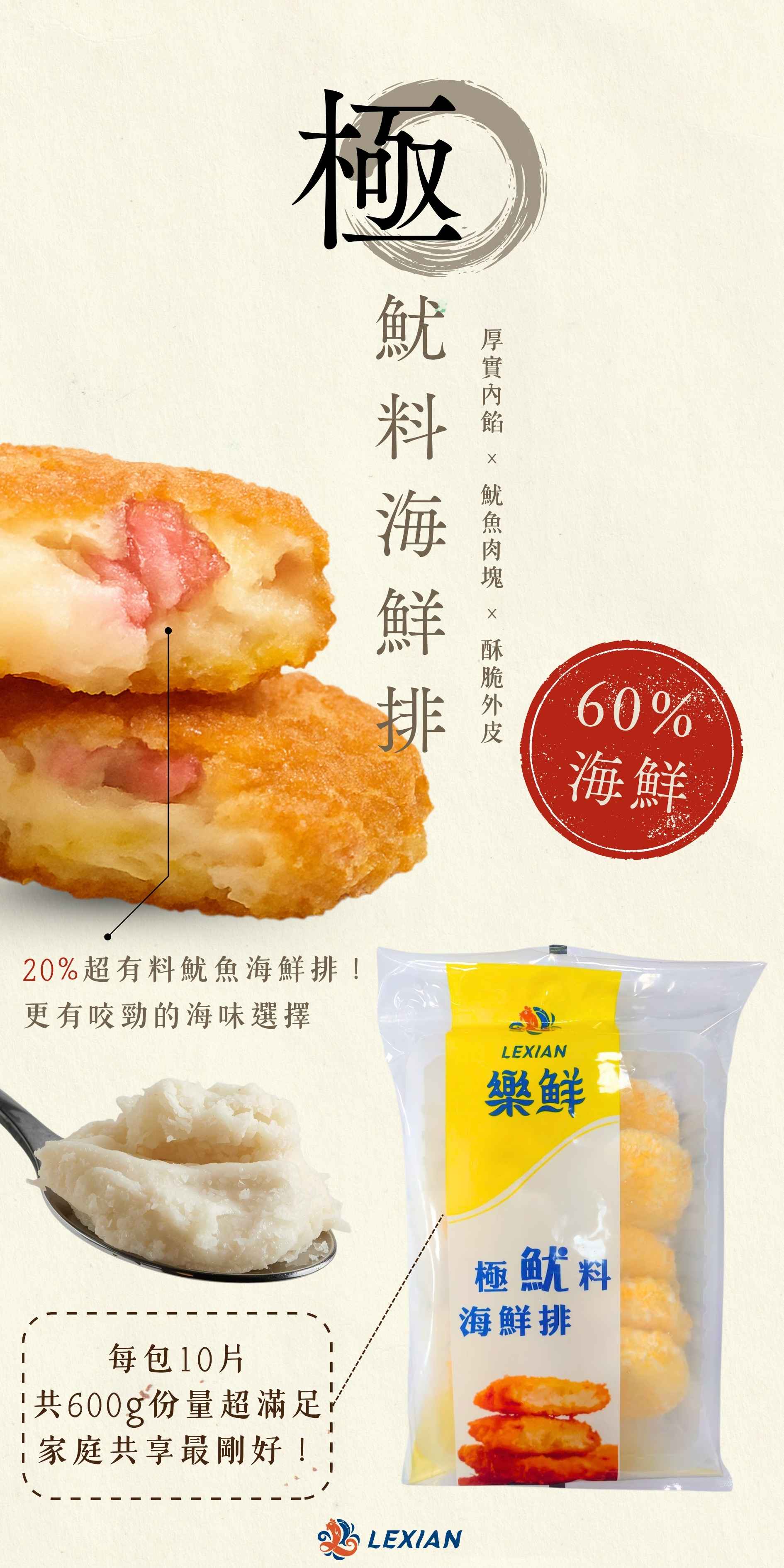 樂鮮企業有限公司-專營雞、豬、海鮮類調理,客製化食材代工、冷凍食品批發,團餐類食品,早餐類食品。品質、安心、服務、創新 四大宗旨是「樂鮮」的最高守則,選用合格食材原料、合格工廠認證、全商品投保1000萬產品責任險,樂鮮讓您吃得安心。海鮮排、花枝蝦排、花枝排、炸排、樂鮮、炸物、冷凍食品